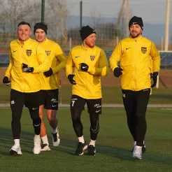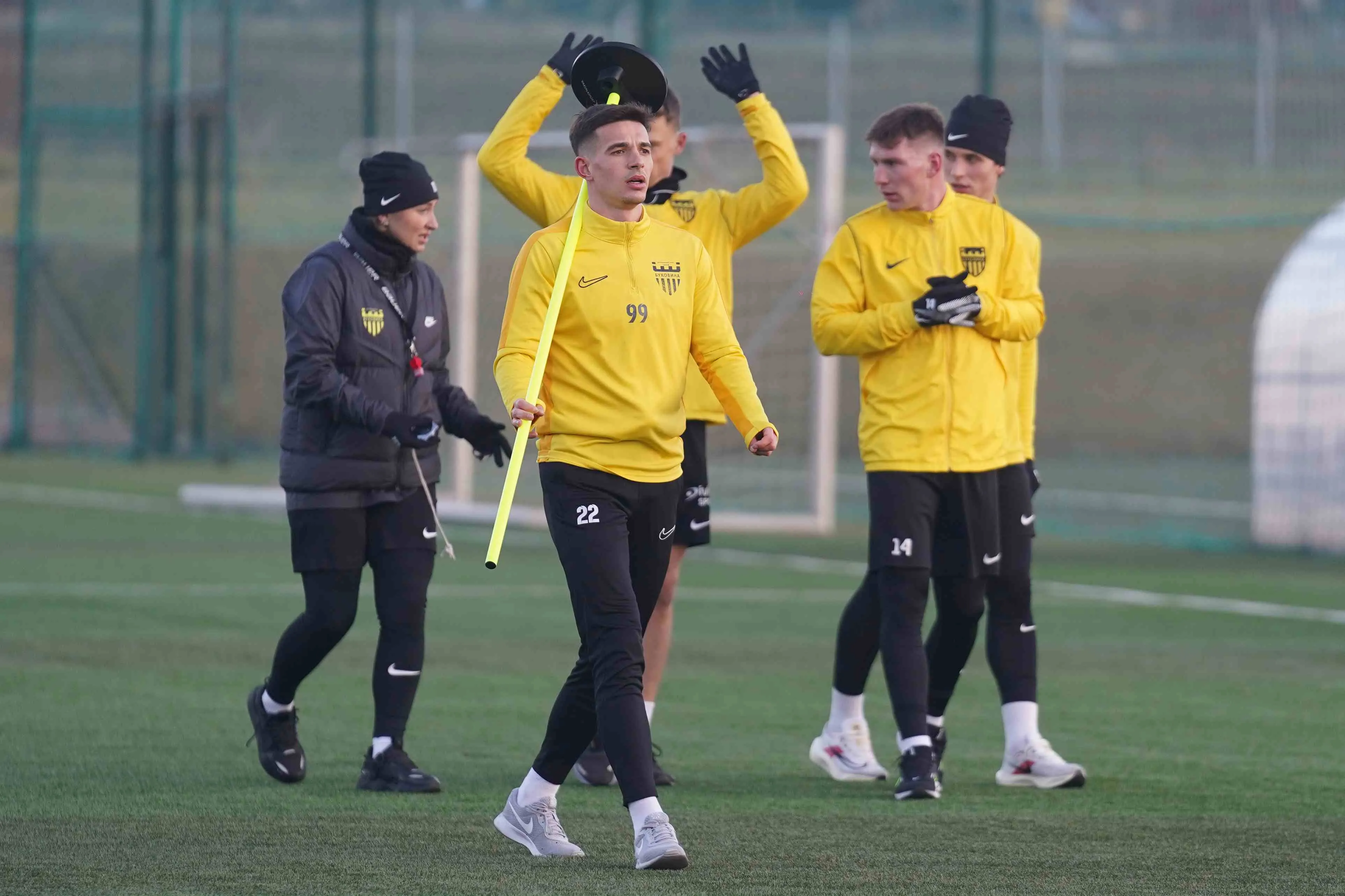 Зимові збори «Буковини» на Закарпатті офіційно стартували – у неділю, 1 лютого, розпочався базовий етап підготовки «жовто-чорних» до другої частини сезону 2025/26. Після прибуття на НТБ «Мункач», швидкого заселення та короткого перепочинку чернівчани провели перше тренування на закарпатському етапі підготовки. Перед початком заняття із промовою до підопічних звернувся головний тренер «Буковини» Сергій Шищенко, привітавши всіх у таборі «жовто-чорних» та окресливши план роботи на найближчий період. Дебютна тренувальна сесія тривала близько години і була спрямована на втягування в робочий процес після дороги. Стартувало тренування з активації у тренажерному залі, після чого футболісти виконували спеціальні бігові вправи на полі для поступового входження у тренувальний ритм.